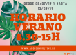 Desde el próximo lunes día 19 de julio hasta el 3 de septiembre cambiamos el horario. Durante esas semanas, estaremos a vuestra disposición de 8:30h a 15:00h.