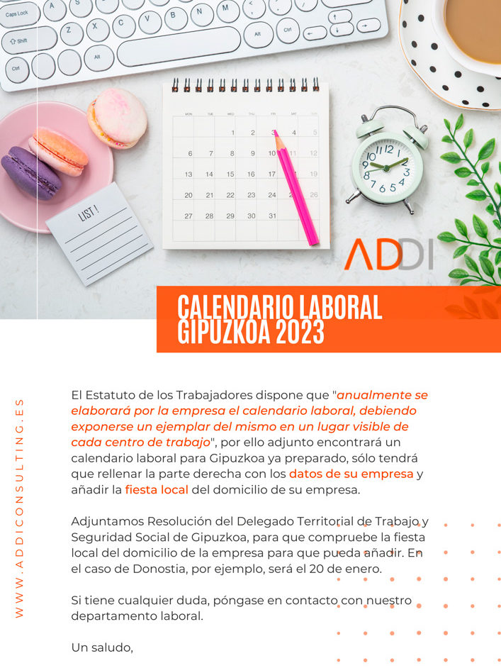 Os presentamos el nuevo calendario laboral Gipuzkoa 2023 Calendario Laboral 2023BOG 2022-09-22