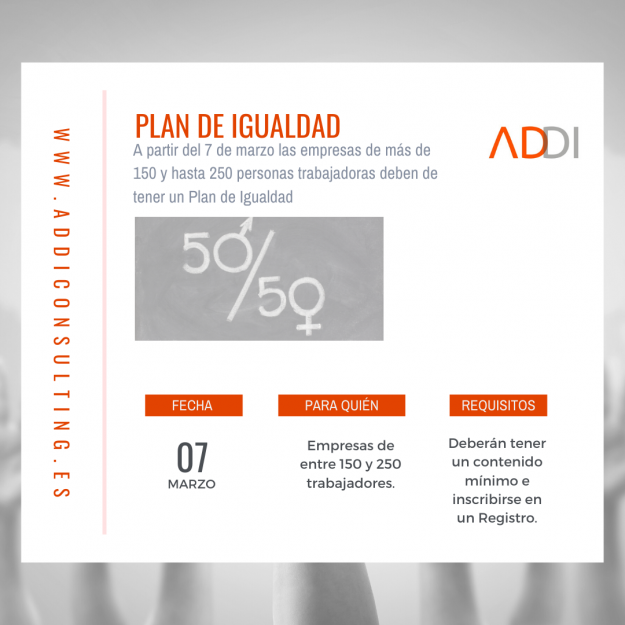 De acuerdo con la Ley Orgánica 3/2007 para la igualdad efectiva de mujeres y hombres, y el Real Decreto Ley 6/2019 de medidas urgentes para garantía de la igualdad de trato y de oportunidades entre mujeres y hombres en el empleo y la ocupación, el próximo 7 de marzo de 2020 finaliza el plazo para…